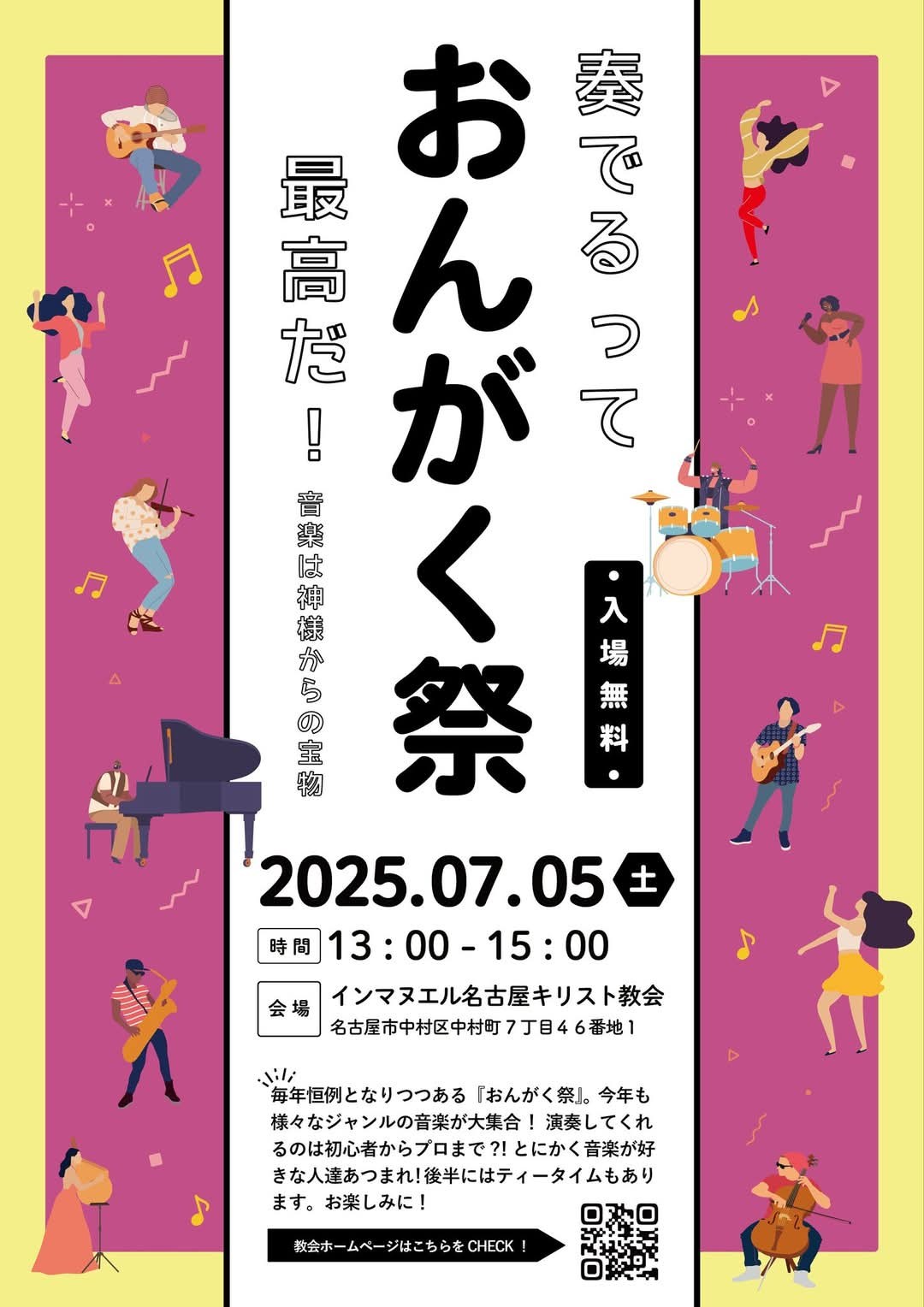 インマヌエル名古屋 音楽祭に出演させていただきます。 News! 2025.06.25 来る2025年7月5日(土)愛知県名古屋市のインマヌエル名古屋教会にて開催予定の「おんがく祭」に嗚呼メンズも出演機会を頂きました。みなさまお誘いあわせの上ご参加ください。当日会場にてお会いできることを楽しみにしています。